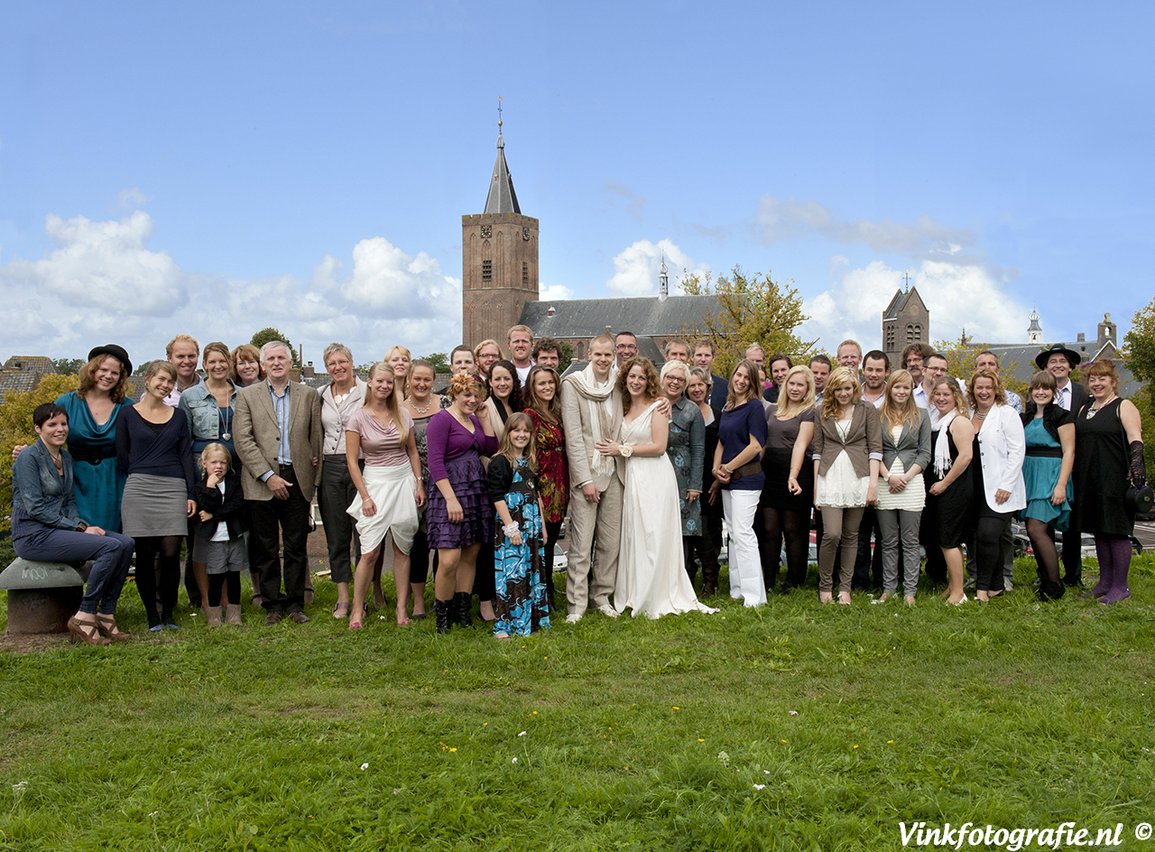 Bruilofts groeps foto: Bij het maken van groepsfoto’s zijn verschillende elementen van belang, zoals de juiste locatie. Ik vind het belangrijk dat iedereen goed tot zijn recht komt op de foto, door er bijvoorbeeld voor te zorgen dat iedereen lacht en goed zichtbaar is.