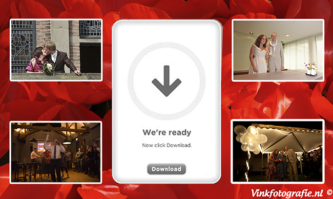 De gemaakte bruiloft foto’s worden digitaal via wetranfser.com verstuurd. Dit bestand bestaat uit verschillende formaat foto’s: de grotere formaat foto’s en web formaat foto’s. Ik bied deze service zodat jullie de web formaat foto’s makkelijk via Facebook kunnen delen en dus niet zelf hoeven te verkleinen; dit scheelt jullie een hoop tijd. Natuurlijk is het ook mogelijk om een mooi trouwalbum te laten maken. Voor meer informatie hierover en de andere prijzen, zie de prijzen lijst.