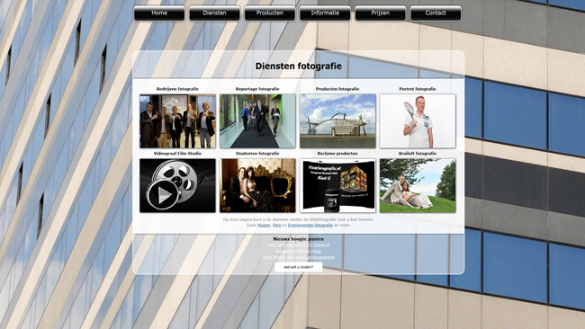 Op de Diensten pagina is te lezen welke diensten ik u zoal kan bieden. Daarnaast kunt u in ‘Nieuws pagina’ zien welke opdrachten ik uitgevoerd heb. Naar wens van de opdrachtgevers is niet iedere raportage op deze pagina toegevoegd. Ik wens u veel kijkplezier op mijn nieuwe website.